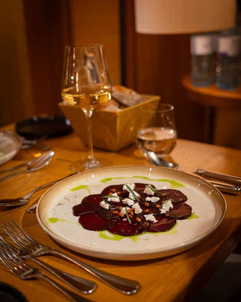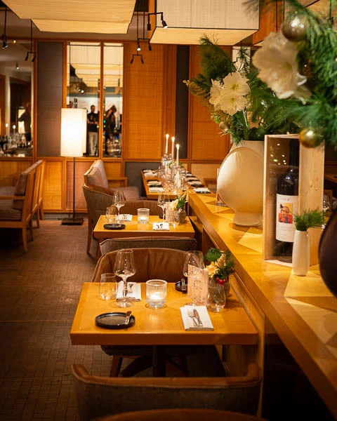 Executive Chef Giovanni Anzoise hat für die Festtage eine winterliche Speisekarte kreiert, die täglich ab 18 Uhr serviert wird. Hier trifft Rote-Bete-Carpaccio mit Sainte-Maure-de-Touraine und karamellisierten Pinienkernen auf Crème Brûlée von der Barbarie-Entenleber mit Portweinfeige und 15 Jahre gereiftem Balsamico. Bei den warmen Gerichten stehen hausgemachte Linguine mit Velouté und Trüffel auf geschmortem Spitzkohl mit Miso-Aubergine, Gemüse-Teriyaki, Buchweizen und gerösteter Hefe zur Wahl, dazu Tranchen vom Atlantik-Kabeljau mit Dashi Beurre Blanc oder Lammrücken mit Süßkartoffelgratin, glacierter Kohlrabi und Thymianjus. Zum Abschluss gibt es Cheesecake „San Sebastian“ mit Blutpfirsich oder eine Tartelette von der Original Beans „Esmeraldas“ Schokolade, begleitet von einer Weinkarte, die von Klassikern bis zu Neuentdeckungen reicht.